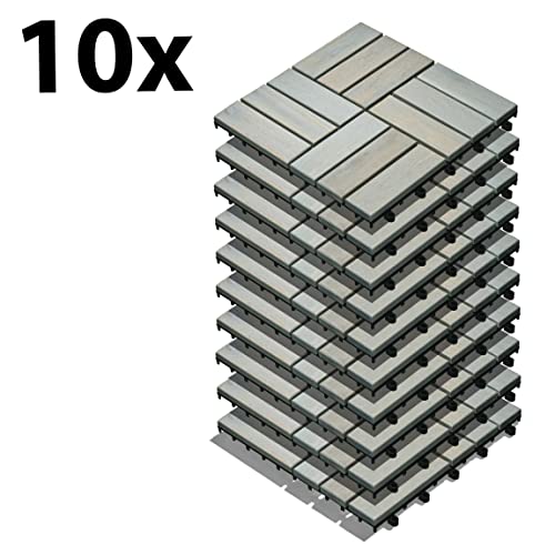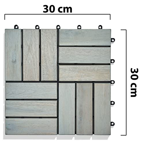 Specification: Gartenfreude Houttegels, vloertegels, 10 stuks (0,9 m²), acaciahout, 30 x 30 cm, weerbestendig, gemakkelijk te installeren, lichtgrijs
