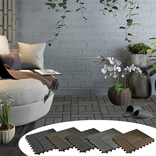 Specification: Laneetal WPC-tegels, terrastegels, kliktegels, op maat te snijden, balkonvloerbedekking met insteeksysteem, lichtgrijs 1 m²