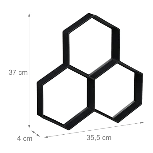 Relaxdays tuinpad mal, zeshoek, sierbestrating, tuintegels, tuinmal, beton gietvorm, kunststof, HBD 4×35,5x37cm, zwart