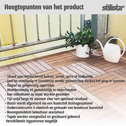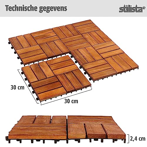 Specification: STILISTA® houten tegels, FSC®-gecertificeerd acaciahout, 30 x 30 cm, 1 m² 2 m² 3 m² of 5 m² – keuze 1 m² (set van 11)