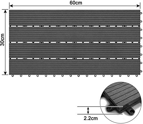 Specification: UISEBRT 6x terrastegels WPC 30x60cm – balkontegels tuin kliktegels in houtlook vloerbedekking met drainage (6 stuks 30x60cm – 1m², antraciet)