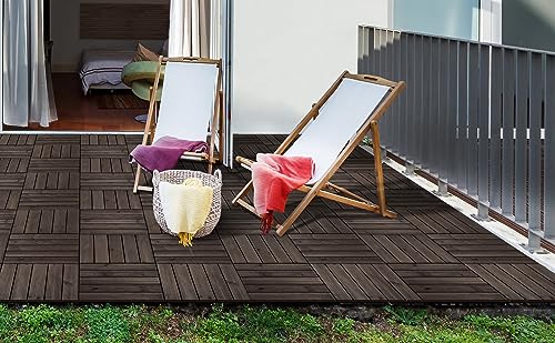 Yaheetech Set van 27 houten tegels, terrastegels, balkontegels, set vloerbedekking met drainage kliktegels 30 x 30 cm weerbestendig, gemakkelijk te leggen, ca. 2,6 m² per set, zwart